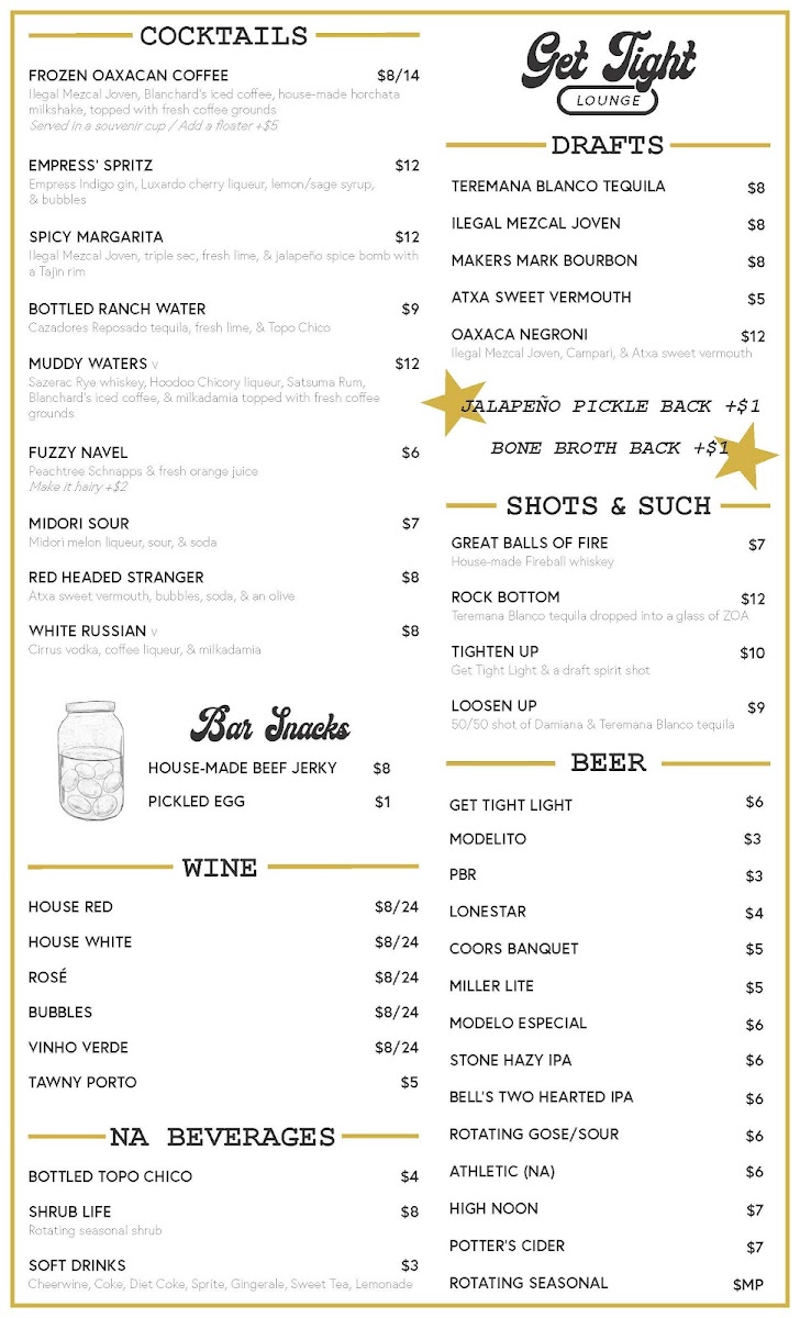 Introducing the Menu at Get Tight Lounge